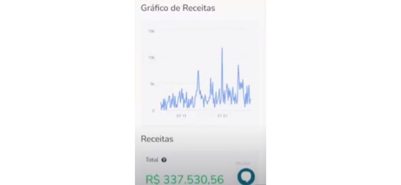 Logo no primeiro mês aplicando o método VTSD, ele faturou 46 mil reais. Hoje, seu faturamento já ultrapassa a marca de 300 mil reais. Como você pode observar no print da Hotmart, plataforma que João utiliza para vender seu produto digital: