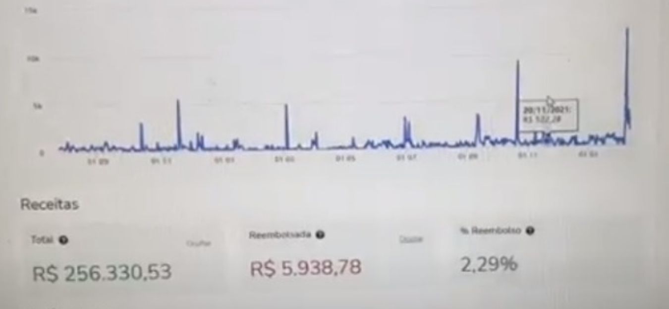 O faturamento de Igor já ultrapassa os 250 mil reais, conforme você pode ver no print de seu faturamento na Hotmart, plataforma que ele utiliza para vender seu produto digital:
